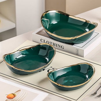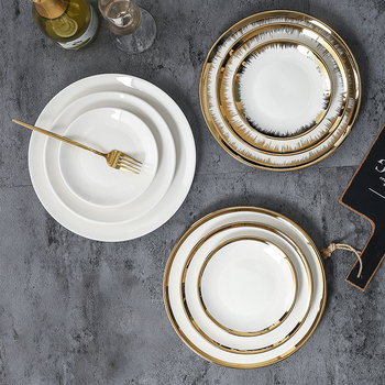 Pacchetto di piatti in ceramica con bordo in oro in stile nordico per la casa di gioielli decorativi per la casa di lusso per piatti da Dessert
